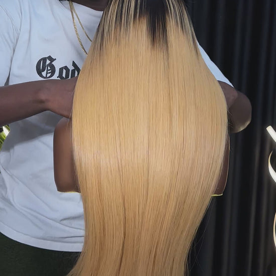 Premium Straight Raw Frontal Wig (Blonde black root)